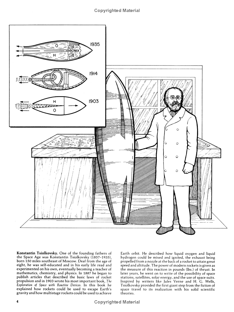 Forty-four carefully researched, accurately drawn illustrations re-create a variety of exciting scenes that chronicle human attempts to explore space — from the launch of the first liquid-fuel rocket in 1926 to the tragedy of the space shuttle Challenger in January 1986.
