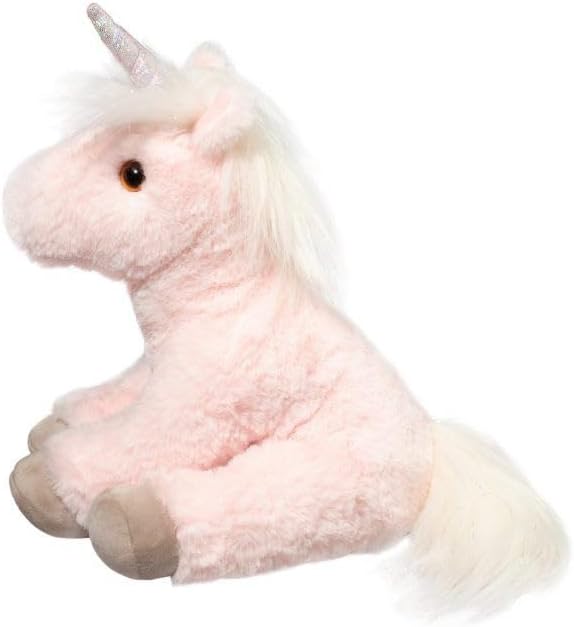 Melodie is a Soft Pink Unicorn stuffed animal who knows the joys of summer rainbows and rosy colored sunsets. She features a seated pose that we’ve gently weighted with beans for an appealing, floppy feel. Melodie’s dusty rose colored coat will melt into your hands every time you need a little snuggle. A long, silky mane and tail add character to our lovable Unicorn foal. Melodie’s spiraled, silver horn adds the appropriate amount of magic to our fantasy plush, while soft, gray hooves and pale golden eyes with a glittery shimmer complete her fanciful appearance.