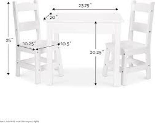 Pull one of the two durable chairs up to the child-size table--they're sized just right for kids, but strong enough to hold moms and dads, too! This sturdy wood table-and-chairs set comes in natural, white, or espresso finish to fit with any home décor, and wipes clean to stay looking crisp and clean. The three wooden pieces are simple to construct with just a Philips-head screwdriver, and incredibly sturdy once assembled. Top the table with a child’s favorite puzzles or use it for arts and crafts, tea parties, puzzle play, lunch and snacks, and so much more! Two chairs have an 11-in seat height and reinforced, tip-resistant design. Assemble with a Philips-head screwdriver, not included.