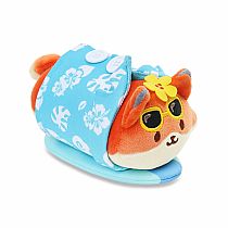 Foxiroll is dressed in a blue Hawaiian Shirt, ready to surf the cool waves!