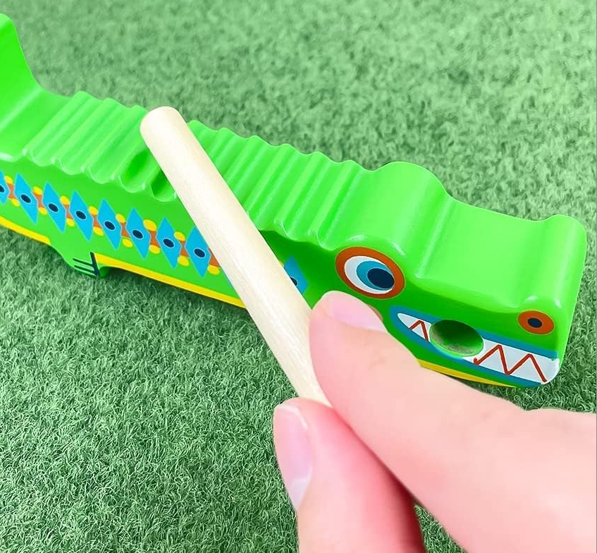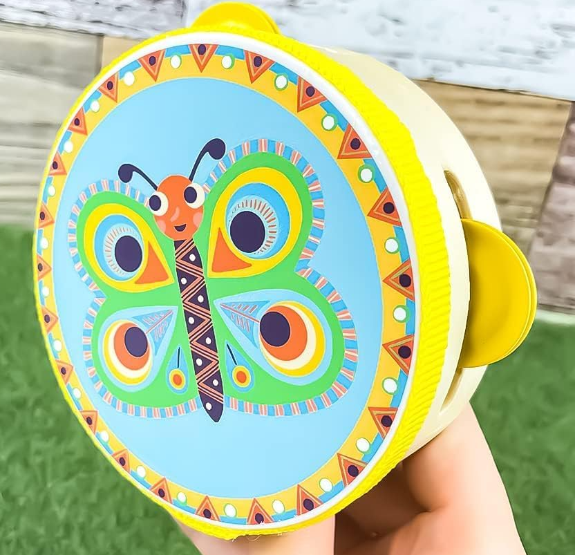 A superb set of three beautifully decorated instruments for little ones: a butterfly tambourine, an egg maraca and a crocodile guiro. The perfect present for introducing little ones to percussion instruments! Age 18 months and above.