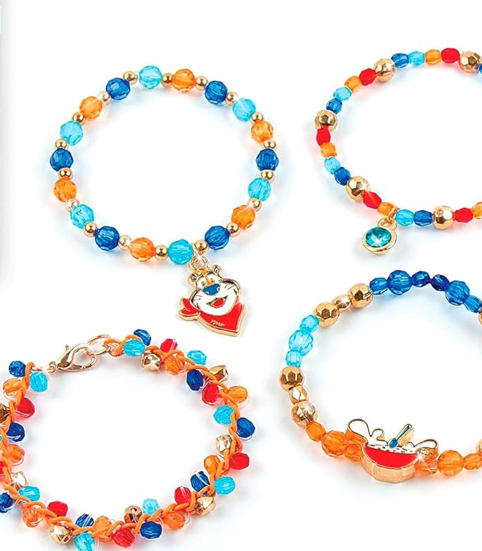 Each kit contains everything needed to make 4 cereal-sly cute Kellogg's Frosted Flakes™-themed bracelets, including cord, charms, and colorful beads.