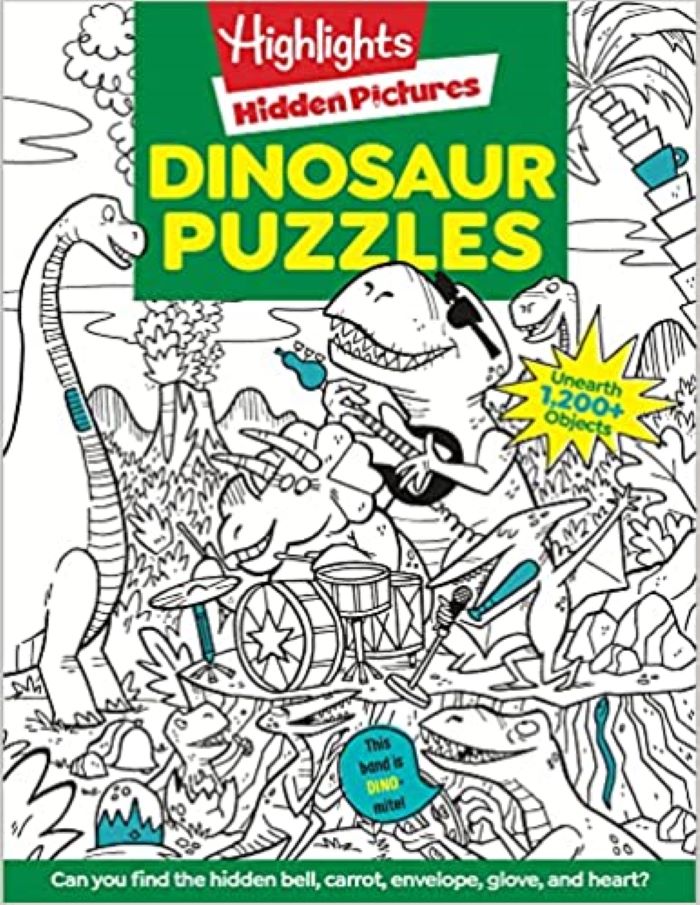 No bones about it—dinosaur fans will love these Hidden Pictures puzzles! Featuring over 100 scenes and more than 1,200 hidden objects in Highlights’ trademark black-and-white puzzles, this book invites puzzlers to spend hours of fun with their favorite dinosaurs. With illustrations of fossil digs and other Jurassic adventures, this 144-page book is sure to please every dinosaur-loving child!