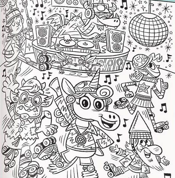 The humorous scenes in this 144-page book include a symphony of unicorn musicians; a goat crossing a troll bridge; plus even more fantastical scenes with illustrations of dragons, fairies, monsters, and more. When kids solve all the puzzles, they can double the fun by coloring in the black-and-white pages.