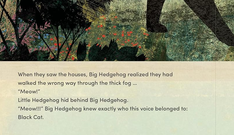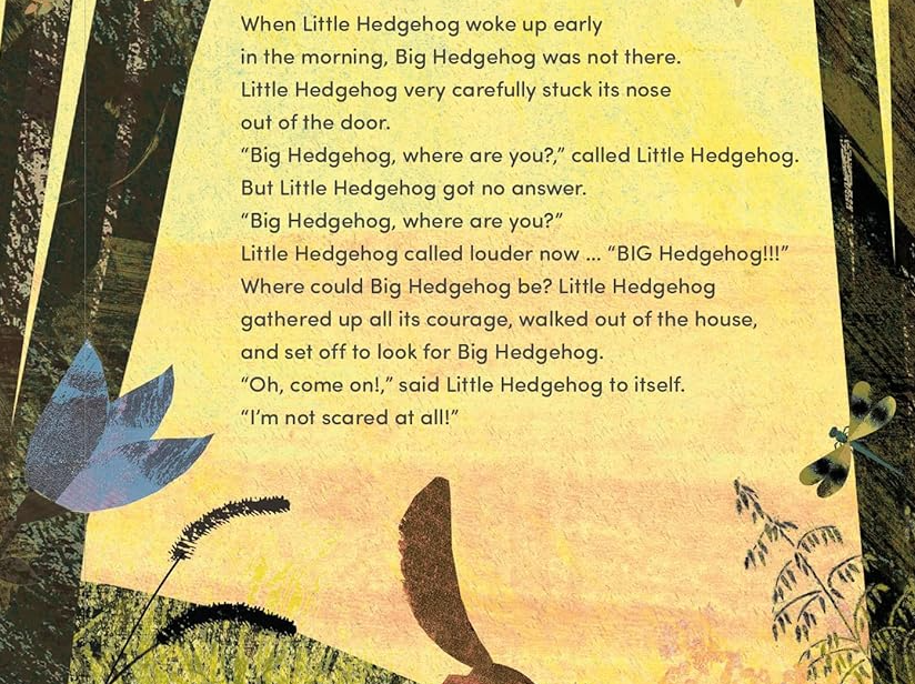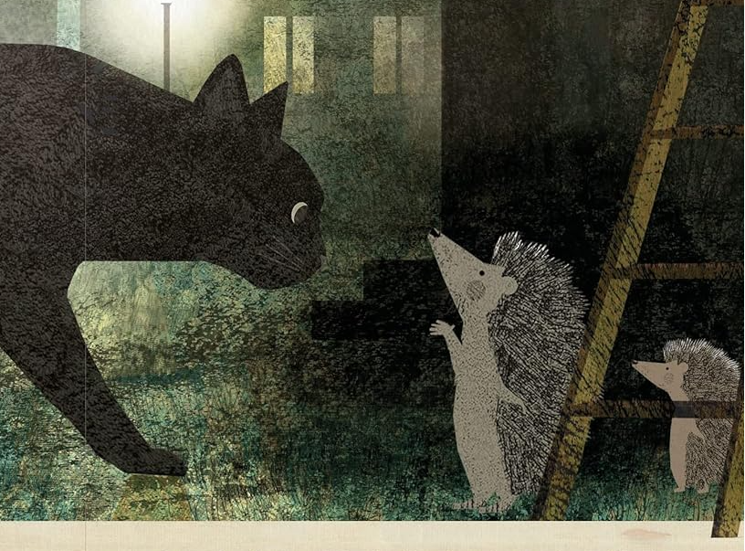 From dark basements to deserted streets, swooping birds to cars’ glaring headlights, menacing foxes to friendly cats, the two friends spend a day and evening confronting things that are both frightful and harmless. As the two hedgehogs walk through their neighborhood, they talk casually about their fears and strategies for dealing with them—whistling, holding hands, counting, being still, and accepting kindness. Few children’s illustrators working today are able to capture nature’s lush colors and textures quite like Teckentrup.