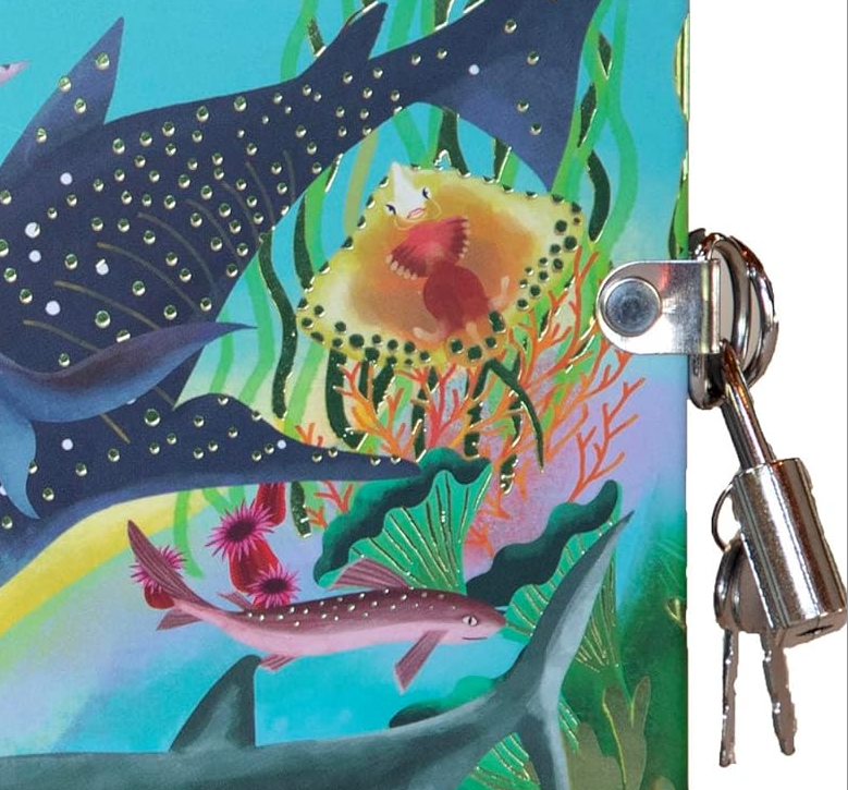 A foil stamped journal in which to explore your own hidden depths. This beautifully rendered diary is vividly illustrated with shark and other glorious sea creatures. Cultivate creativity, literacy, and self-expression. For extra security, the journal comes with a lock and two keys!
