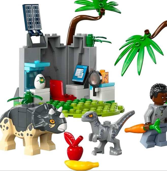 Young fans aged 4+ can care for and play with dinosaur babies while learning to build with this LEGO® Jurassic World Baby Dinosaur Rescue Center (76963) set. It includes an off-road vehicle and research area with a cave wall, both with Starter Brick elements, plus a feeding station. 2 minifigures, baby Ankylosaurus, Triceratops and Velociraptor figures, and small Velociraptor and adult Pteranodon kids’ dinosaur toy figures get play started fast.