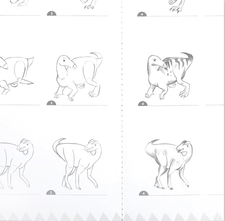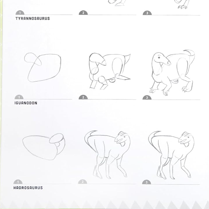 A thoughtfully designed introduction to drawing dinosaurs in sequential steps. Sections are organized by geological period, each ending with a two-page landscape spread for you to populate with the creatures and prehistoric plants you have learned to draw!