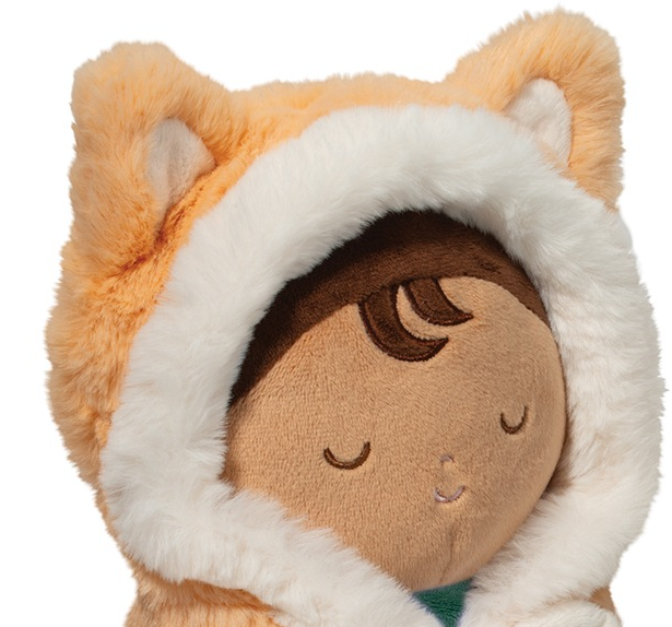 Featuring a gentle pastel orange color and trimmed with creamy, white plush, this appealing accessory is sure to keep our little Baby cozy. The easy to use closure is embellished with an embroidered paw print, while small, pointed Fox ears and a white tipped tail complete the design. Baby features a woodsy green onesie and fits snugly within the swaddle for hours of interactive play. Dream up a whimsical woodland adventure with our Baby Fox Hug today!