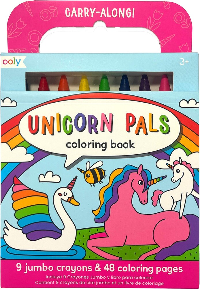 Some might argue that unicorns aren’t real (we like to think they are!), but what no one can disagree with is that this unicorn pals coloring book for kids is the perfect on-the-go and travel activity! Designed with a take-along handle, this coloring set includes 48 pages of illustrations and 9 jumbo crayons—everything you need in one tidy package. Now you can keep kids busy and happy no matter where they are! This small coloring book will delight any mythical creature-loving kiddo with sweet designs that they can bring to life in their own unique way. A coloring book with crayons? It’s genius! More importantly, it’s fun!