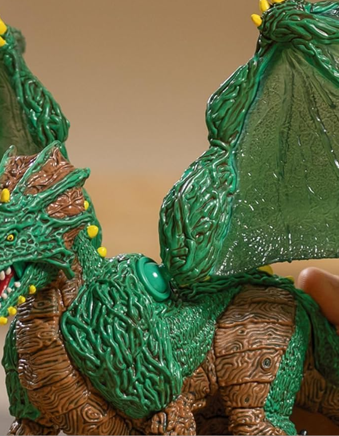 The Jungle Dragon has a firm grip on the Jungle World. No one dares dispute its supremacy. Why? Just one look at those powerful jaws, ready to crush anything, is enough. It bares its needle-sharp teeth threateningly. Anyone who gets too close is in danger of a painful blow from that powerful tail. It's even covered in sharp spikes for good measure. The dragon is better viewed from a distance, like when he spreads his huge wings and soars into the air. That's also its favorite place to be, because, from up there, it can keep an eagle eye on ELDRADOR®.
