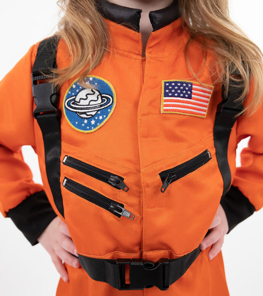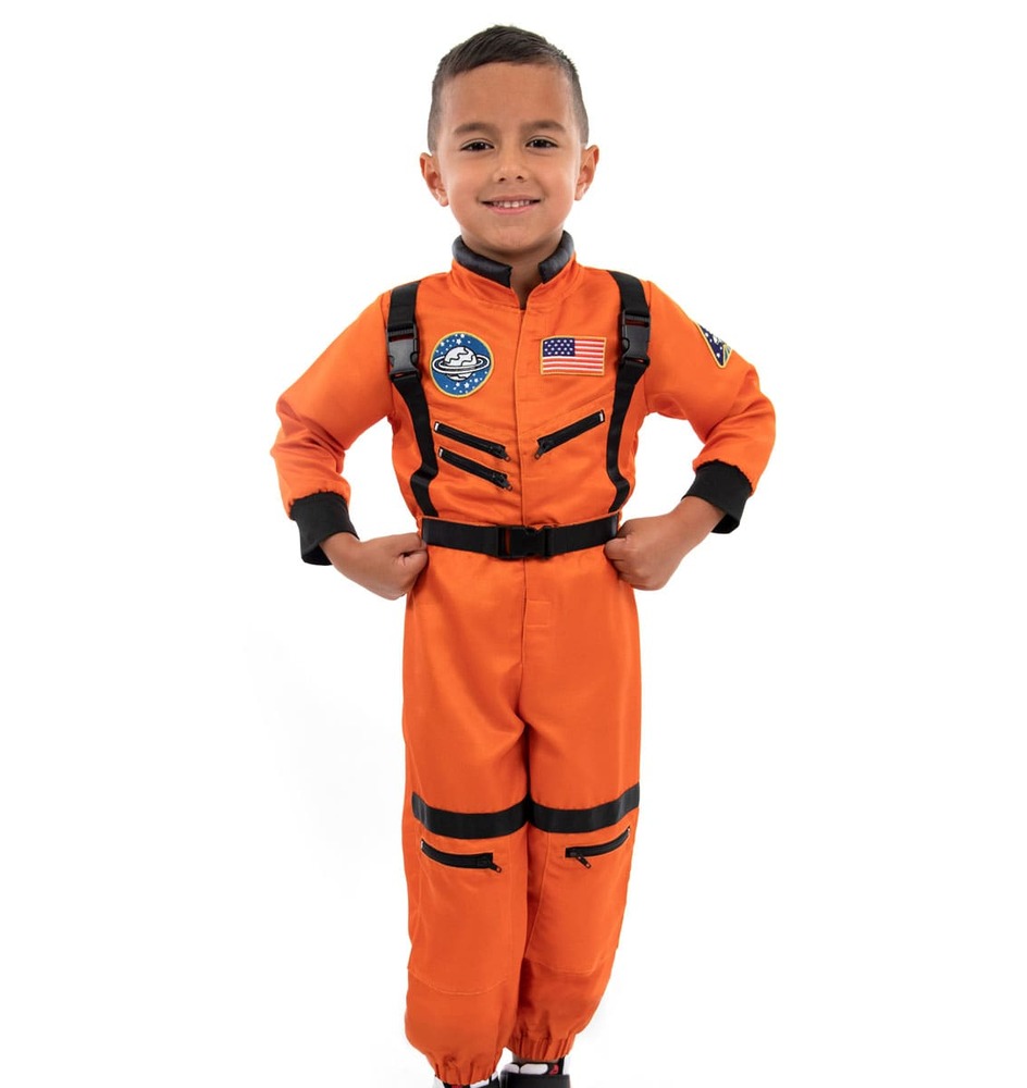 One-piece jumpsuit in a shade of cosmic orange, mimicking the iconic spacesuit worn by real astronauts