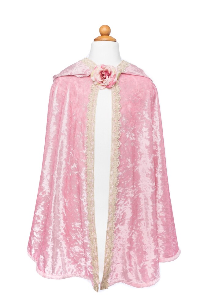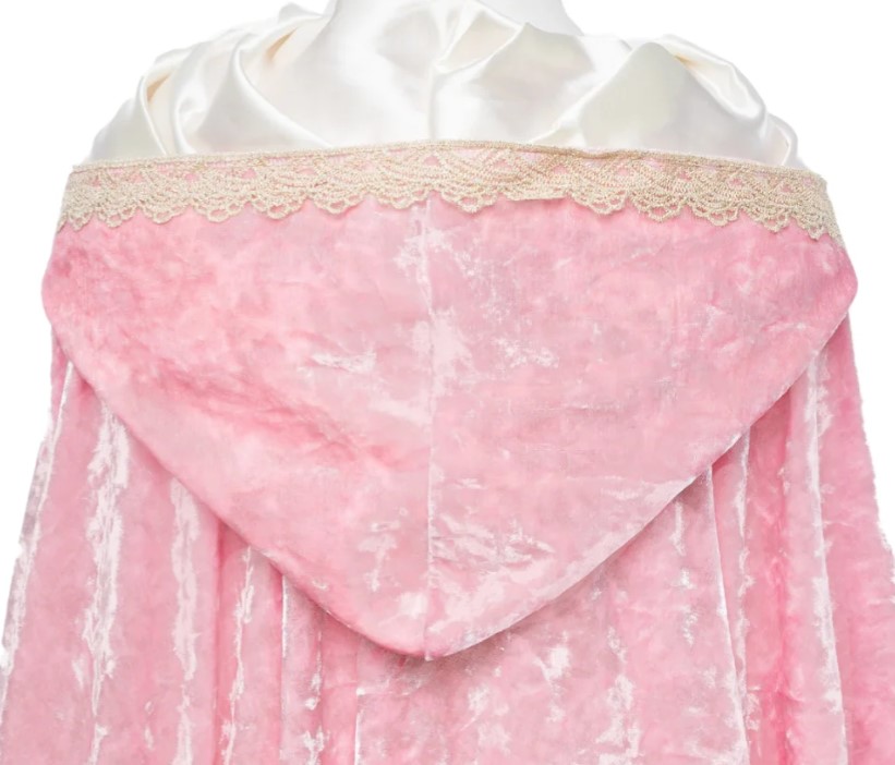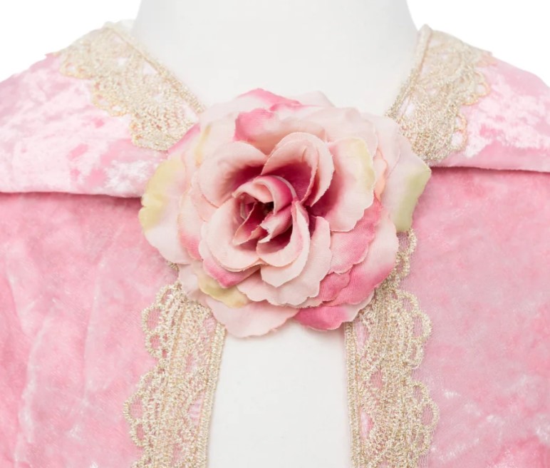 This crushed dusty rose / antique pink velour cape with embroidered gold trim made with love and magic is truly fit for a princess. The hood is lined with high-quality 96gsm cream satin, which is soft against your child's skin. Pair this cape with one of our beautiful gowns.