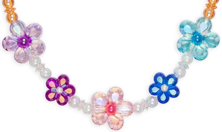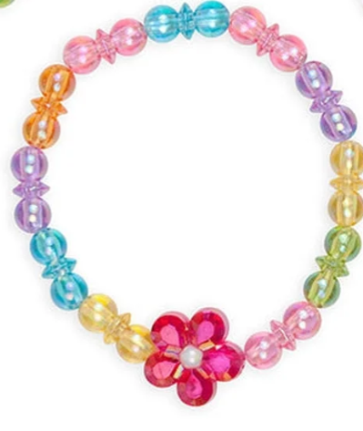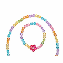This budding bracelet necklace set is sure to add sparkle to your little one! Featuring a rainbow sequence of translucent beads strung on a stretchy durable elastic. 5 large blooming multi-faced flower beads and a matching flower bead finish off this necklace and bracelet combo.
