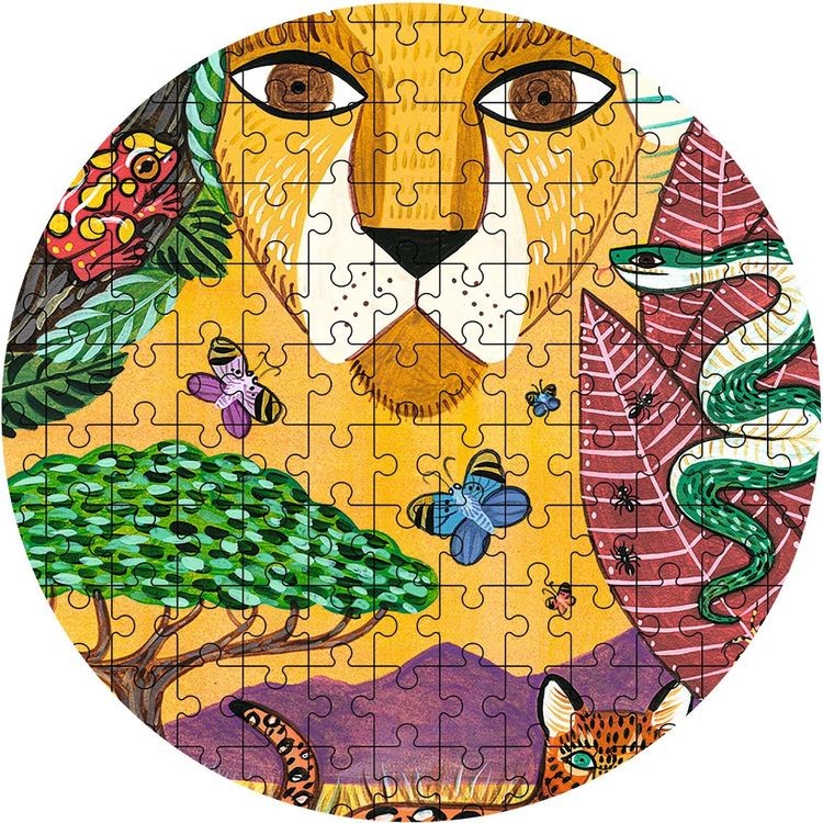 All throughout this large, proud lion shape, you can discover a wild world brimming with colour.