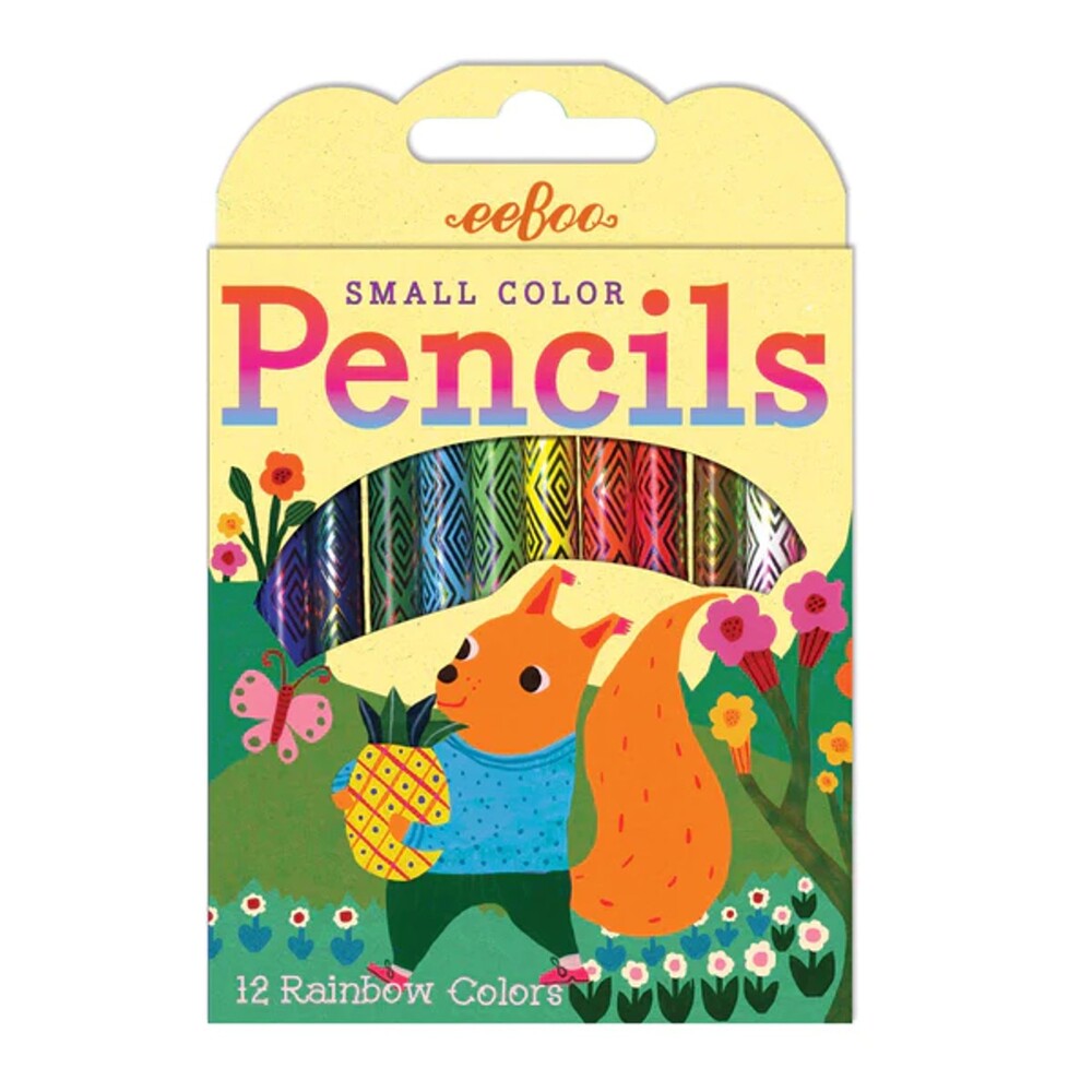 Each pack contains a rainbow of 12 color pencils. How did that squirrel get a pineapple? Illustrated by Monika Forsberg. Package size is 3.25" x 4.25" x .375" Each pencil set includes 12 colors with holographic foil design. 4 styles,