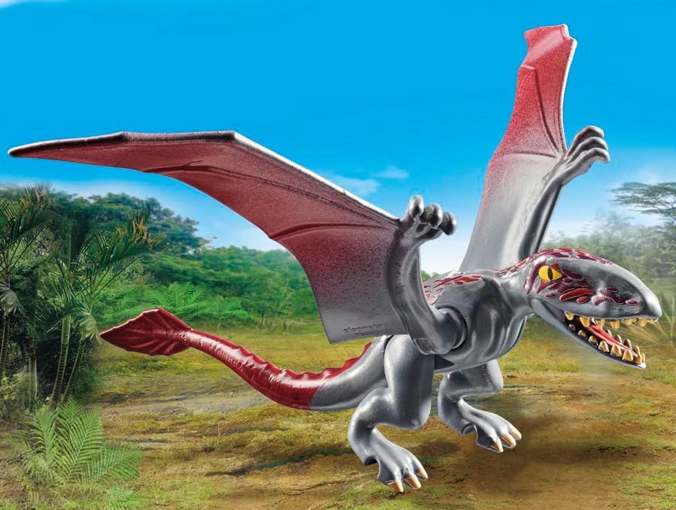 • The dinosaur figure can move its arms, legs, and head and has an articulated jaw. The wings of the flying reptile can rotate in all directions.