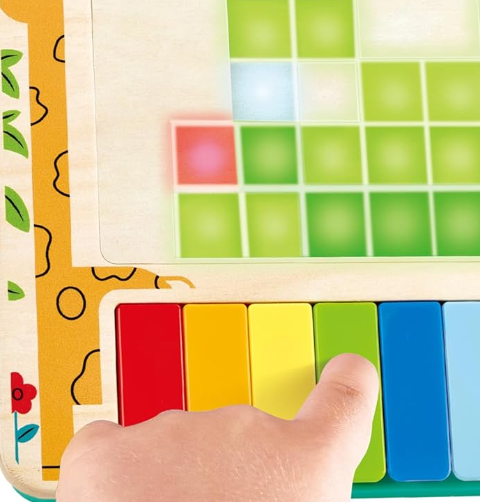 The Hape Dynamic Pixel Piano is an interactive toy that introduces children to the world of music through a blend of vibrant pixel art and engaging play modes. With its "Learn with Lights" feature and tactile piano keys, it fosters creativity, rhythm, and cognitive development in a fun and captivating way.