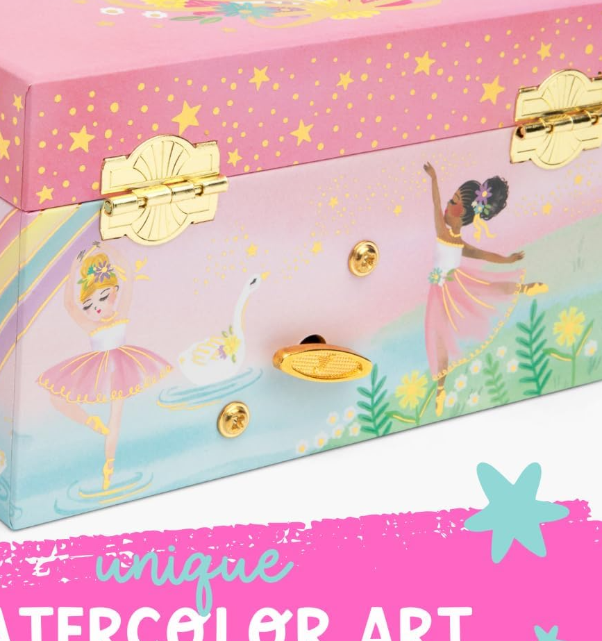 Elegant Design - Elevate your daughter's ballet décor with an exquisitely designed jewelry box for little girls. The intricate details on the kids jewelry boxes are crafted by curated artists & boast dazzling ballerina details that captivate and charm