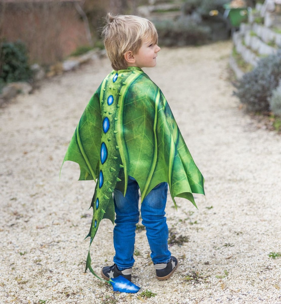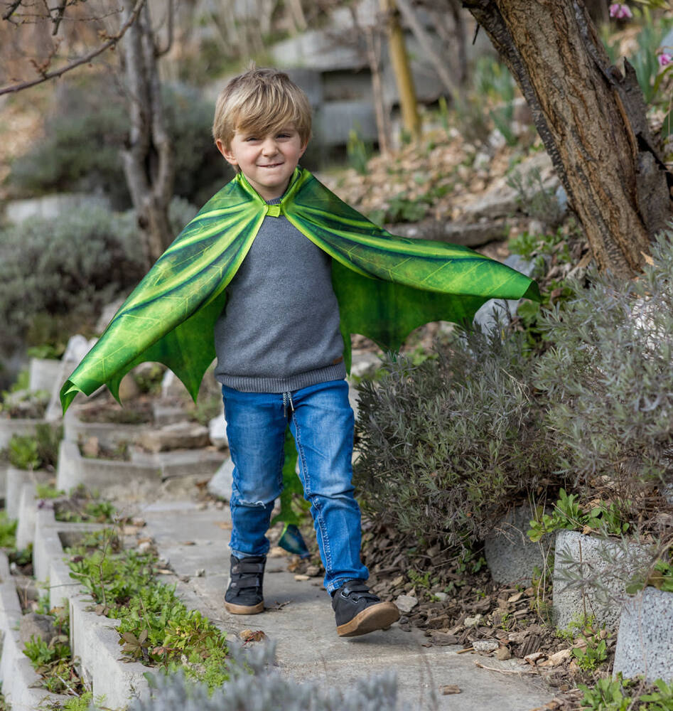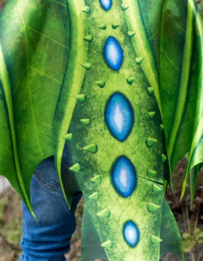 This charming green dragon ensemble will whisk your child away, igniting their imagination to breathe fire and take flight through the skies. Meticulously hand-drawn by our skilled in-house graphic designer and engineered for seamless movement, these lightweight wings guarantee that your little one's imagination will soar to boundless new heights! Machine Wash-cold gentle cycle, no bleach, drip dry, iron on low heat.