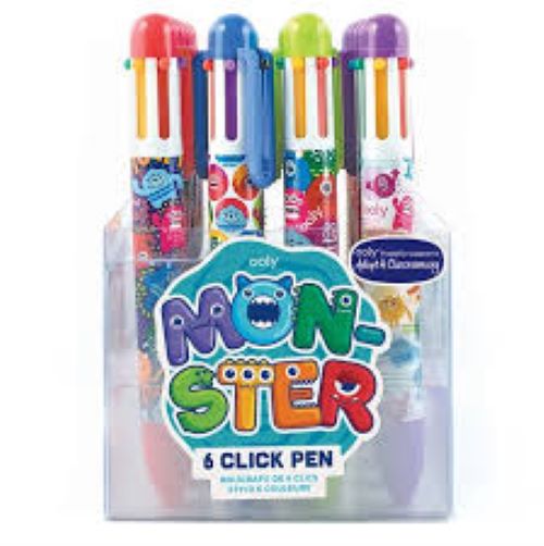 Choose from 6 different colored pens in one. Just click the retractable pen and switch between red, purple, green, yellow, blue and black ink. Having this multi color pen is great because you can color coordinate your school notes and can even organize your planner or calendar using the different colored pens. Signing gift cards, writing notes to friends and anything else you write will be more colorful. Monster 6 Click Multi Color Pens come in 4 different colors and designs too.