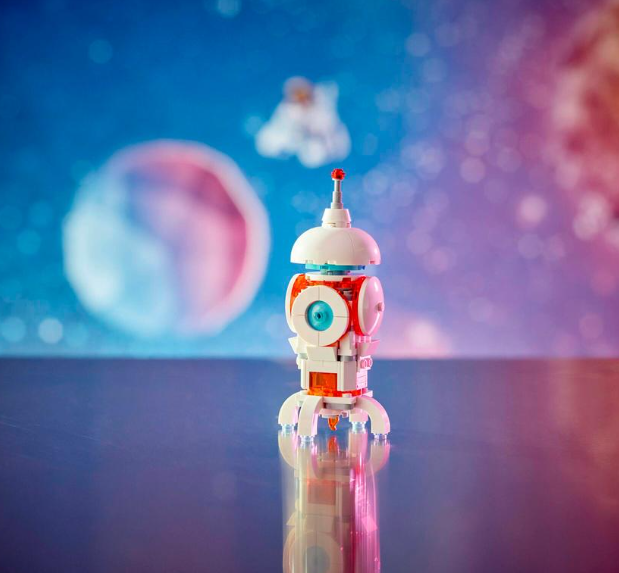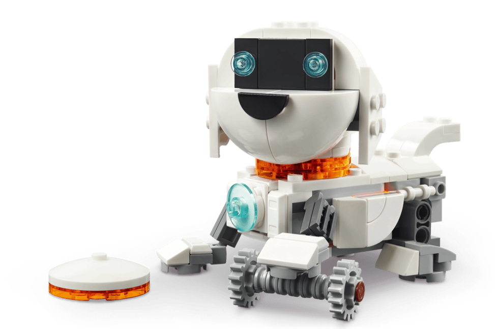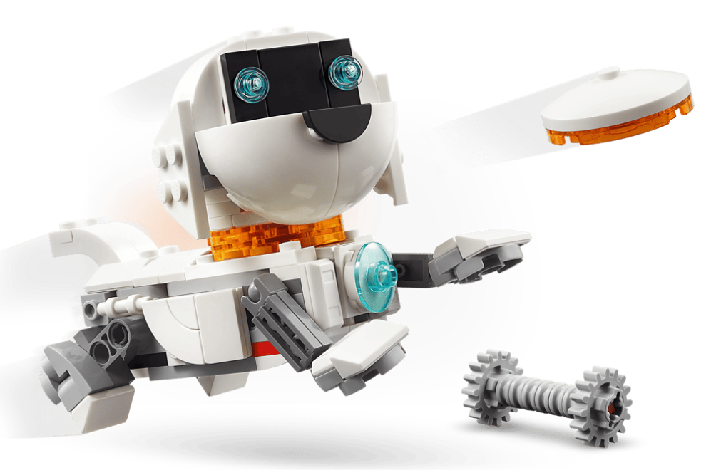 Multiple play possibilities – Kids can stage intergalactic adventures with 3 different playsets (models cannot be built simultaneously): a Space Robot toy, a space dog figure and a space rocket