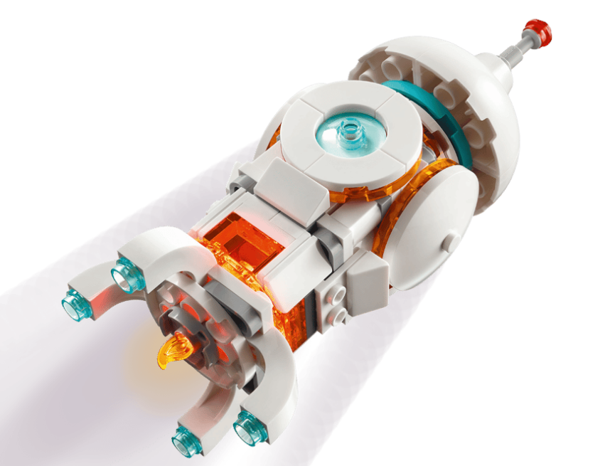 Illuminated models – All 3 LEGO® space models light up when kids press down on a special light brick (batteries included)