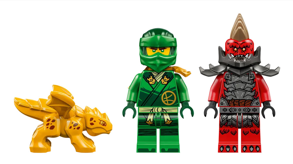 2 minifigures – Lloyd armed with a golden katana sword accessory and a villainous Dragonian Scout warrior with an axe accessory so kids can enjoy exciting ninja action