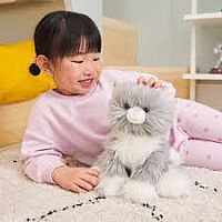 She boasts expressive bright blue eyes, an embroidered smile, and a tiny pink nose, with details collectors and cat parents will appreciate. This pretty kitty also features a unique, slightly floppy design that makes her super huggable and just a little bit squishy. She’ll melt in your arms as the perfect lap cat or pose in fun positions on display!