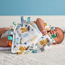They were crafters and created the original Taggies, a square piece of fabric with lots of sewn in looped ribbons. They took it to a few local independent specialty retail stores and it became a reality. Within a couple of years, retailers across the country were stocking the original Taggies in a variety of prints.