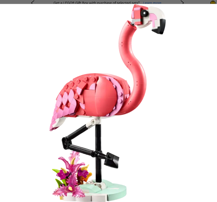 Measurements – This 288-piece LEGO® rebuildable toy set features a pink flamingo toy standing over 9 in. (23 cm) tall