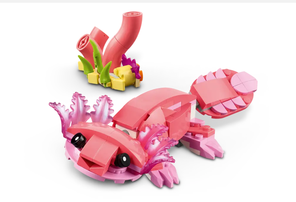 Endless play options – Kids can role-play stories with 3 different animal models (note that models cannot be built simultaneously): a pink flamingo toy, a pink cockatoo toy or a pink axolotl toy