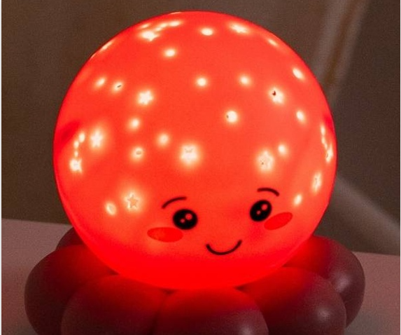 Twinkles features LED lights that keep the Octo's body cool, safe and long-lasting. And, with no cords to tangle with, Twinkles is always ready to travel. This incredibly lightweight, traveling nightlight has one on/off button. Press the button twice to change color setting. After 45 soothing minutes of stars and fish, an auto shut-off feature turns Octo off. Sleep is just a little bit sweeter with this glowing octopus who encourages quality, restful sleep. Bring all the comforts of home on the road with Twinkles To Go Octo™!