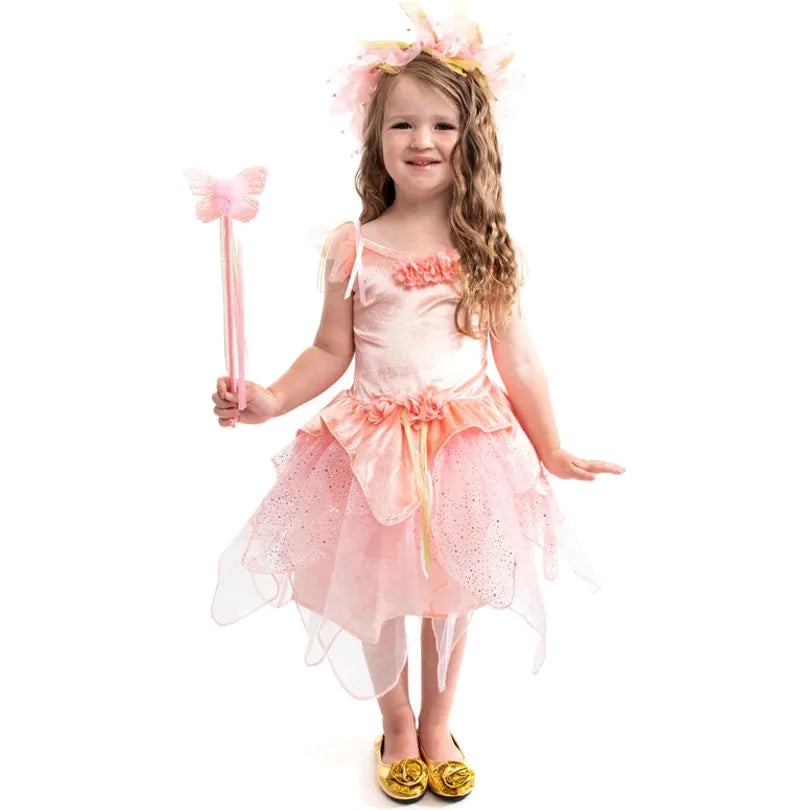 This adorable set matches our Rose Garden Fairy and includes: ribbons, jewels, feathers, sparkly swirls and butterflies. The halo sits atop the head with a flexible and comfortable plastic headband and ribbons to adjust the size. The wand is constructed with a thick, durable handle wrapped in satiny ribbon. It's durable of course and guaranteed to last.