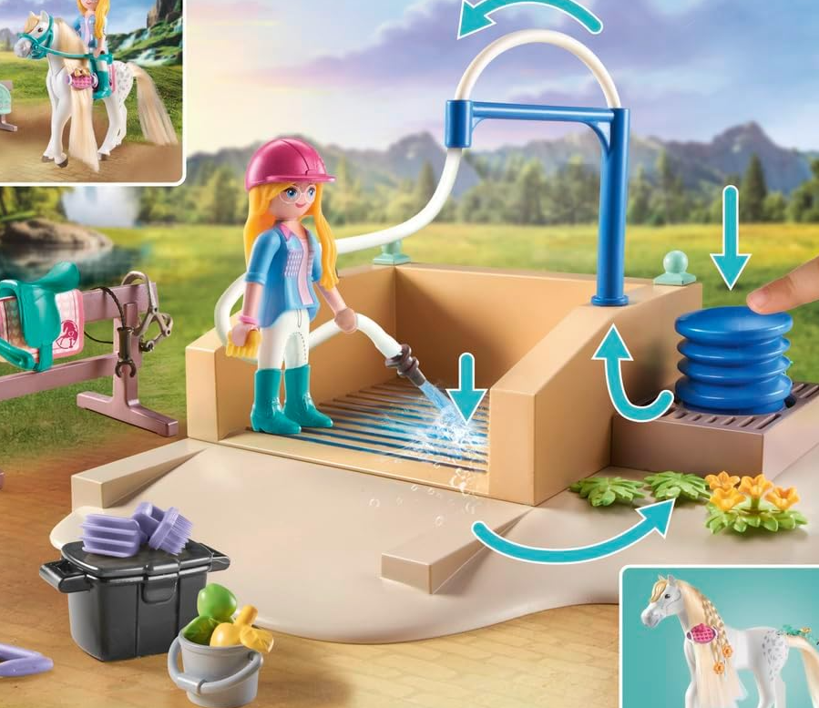 • Highly detailed horse toy with PLAYMOBIL figure Isabella and her Lusitano mare Lioness, hairbrush, hair clips and many other great accessories for horse care