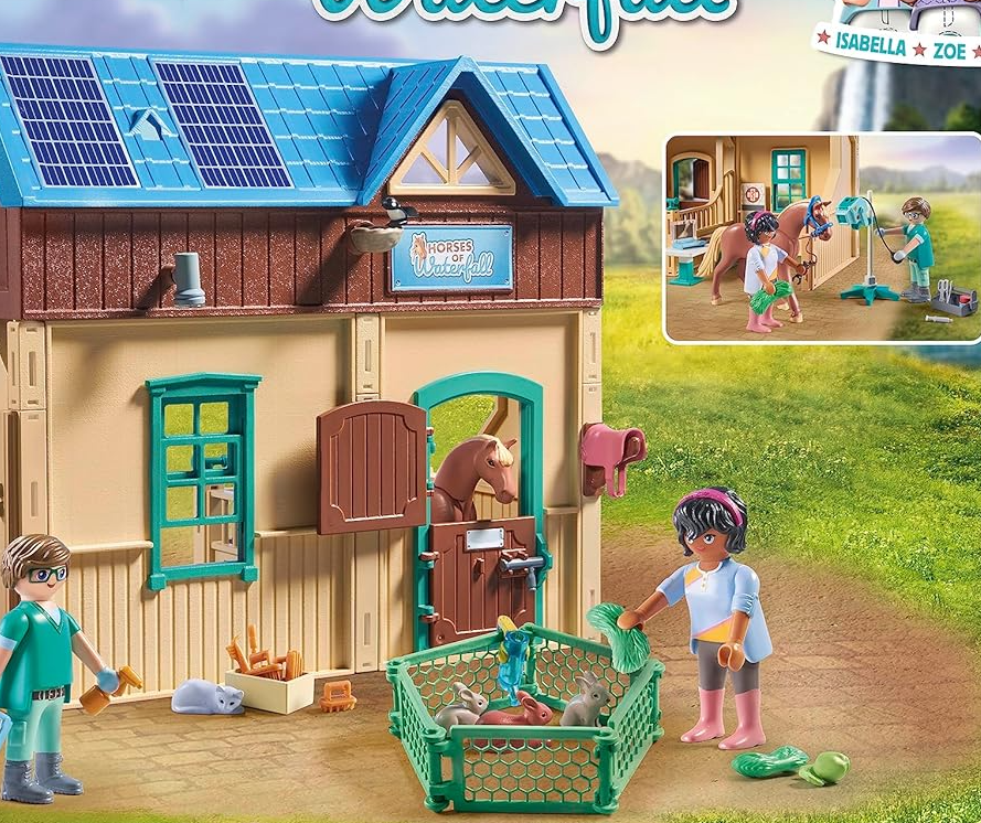 Welcome to the picturesque Waterfall Ranch. Here the five best friends Amelia, Isabella, Zoe, Ellie and Ben spend every free minute together with their horses. Between riding training and horse care, there's much more to discover at the ranch. In the riding therapy & veterinary practice, veterinarian and equine therapist Phil treats patients. Thanks to aqua trainers with treadmills, injured horses are quickly made fit again. In addition, equine therapy and therapeutic riding are offered to people of all different abilities. A great gift or souvenir for horse fans aged 4 years and up.