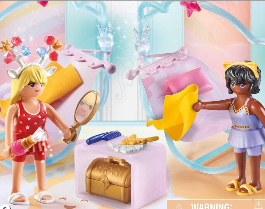 • Enchanting princess toy with two PLAYMOBIL figures, two cloud beds with hammocks, decorative stars, treasure chest and numerous great extras for imaginative playtime in the children's room.