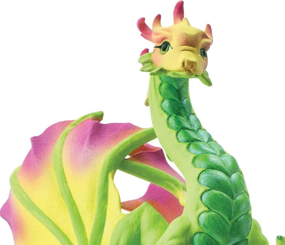 Size and Color: Measuring 4.5 inches long and 5.25 inches tall, this dragon is as vibrant as a spring garden, featuring shades of green, yellow, orange, and pink.