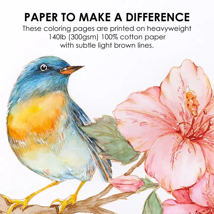 HIGH-QUALITY PAPER FOR OPTIMAL PERFORMANCE - Our coloring book is made from premium 140LB heavyweight watercolor paper that resists warping and bleeding. Each of the 15 sheets is crafted from 100% cotton, hot press paper, providing a luxurious surface for various techniques.