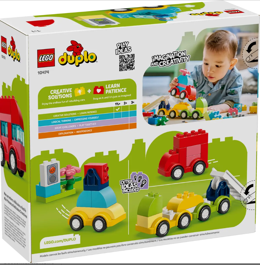 BUILD AND REBUILD VEHICLES TOY – The LEGO® DUPLO® My First Creative Vehicles (10474) toddler learning toy includes 42 pieces, plus 3 wheelbases, to make lots of vehicles and fun traffic stories