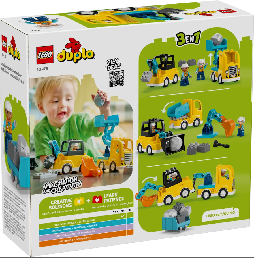 BUILDING TOYS FOR TODDLERS – Rev up young kids’ creativity with the LEGO® DUPLO® Town 3 in 1 Construction Vehicles (10475), whose 22 bricks assemble into 6 toddler truck toy building options