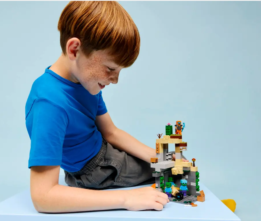 PRETEND PLAY TOY – Set in the Minecraft desert biome, this set offers hands-on features to inspire imaginative play such as a rotating, zombie-spawning chamber and sliding piece to trigger a rockfall