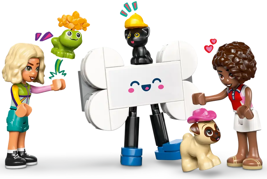 2 LEGO® FRIENDS CHARACTERS – Storytelling and pretend play are so much fun with this toy set which includes Nova and Aliya minidolls plus 3 animal figures: a kitten, a dog and a frog