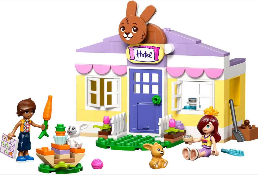 This cute set is packed with fun details, like the special pet door for the bunnies and the cute bunny sign. Inside there’s a carrot-shaped rug, a sleeping area with bunny beds, plus a checklist to check the bunnies in and out of the hotel. Outside is a seating area forthe bunnies, where they can sit together and enjoy a carrot cupcake. Other accessories inspire kids to care for the pets with a brush, yarn ball, food and water for the bunnies and a shovel to scoop up the rabbit poop. This set makes a great gift for girls and boys who love animals. With the LEGO Builder app, kids can enjoy an intuitive building adventure where they can zoom in and rotate sets using 3D building instructions, save sets and track progress. Set contains 161 pieces.