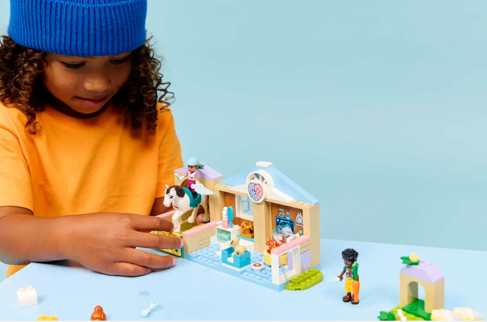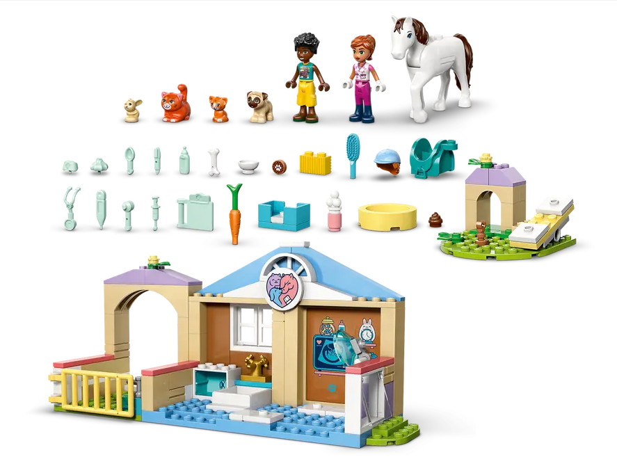 CARE FOR THE PETS – The LEGO® Friends Animal Vet Clinic (42696) has everything kids need to tell animal care stories, including a toy horse stable, an examination room, a pet playground and more