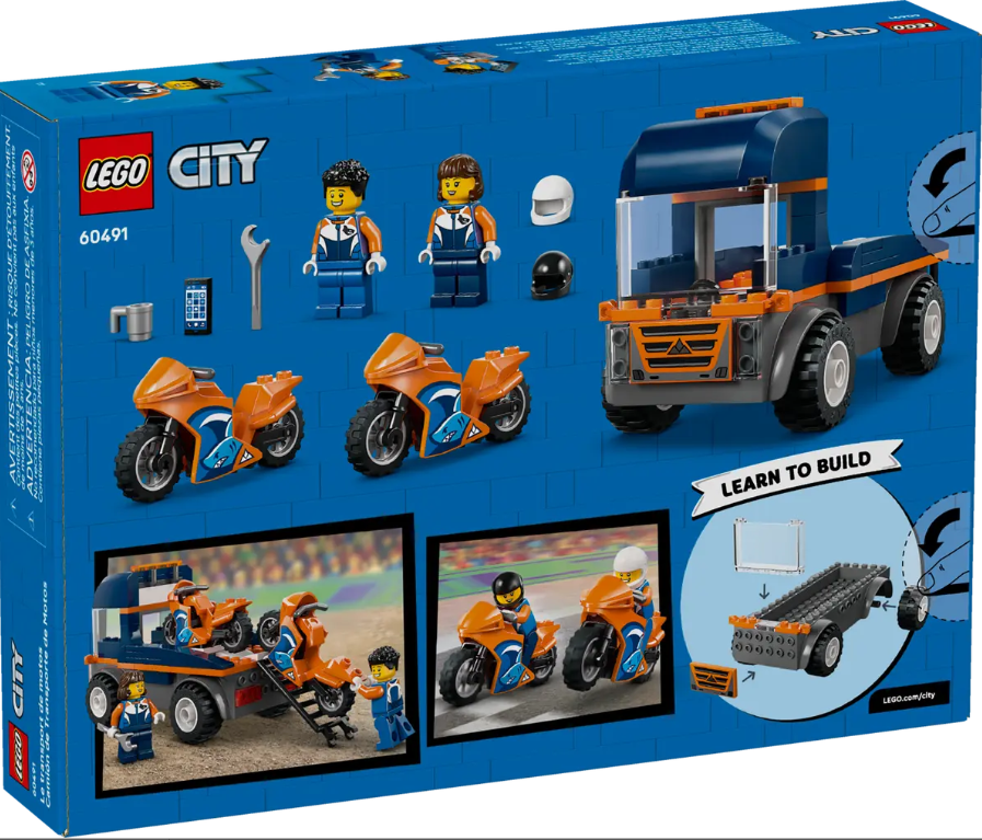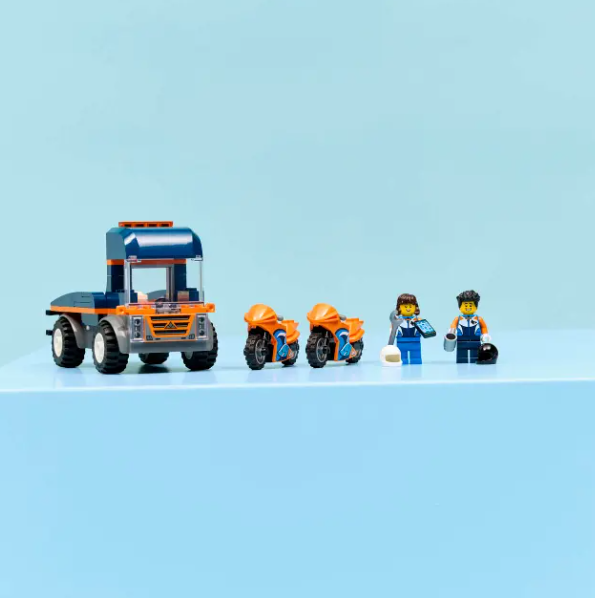 Kids can load and unload the bikes using the ramp, play out epic motorcycle race action and seat a minifigure in the cab for fun on-the-road adventures. This easy-build toy playset includes a LEGO Starter Brick element, a simple pictorial guide and 3D instructions in the LEGO Builder app – a digital building companion with zoom and rotate tools that enable kids to visualize models from all angles as they build. This playset makes a fun treat or birthday gift for boys and girls who love racing toys, creative play and imaginative storytelling. Add these vehicle toys to other building sets (sold separately) from the LEGO City range for more exciting race action. Set contains 88 pieces.