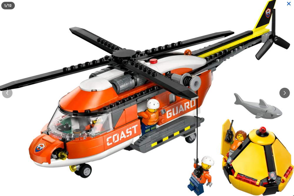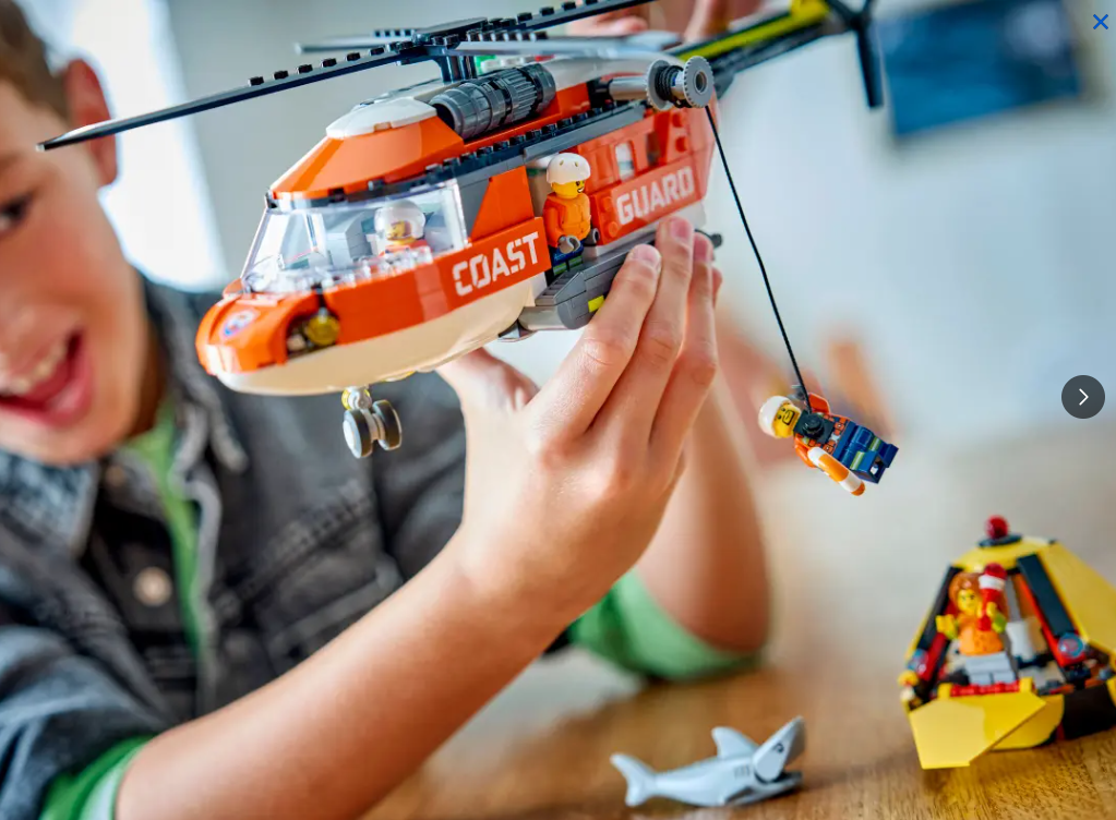 The impressive red helicopter model features spinnable rotors, sliding side doors, a fold-down rear ramp and a detailed cockpit and fuselage. Kids can lower a crew member with the helicopter winch and the set also includes a rescue capsule that folds open for access to its interior. Just add the pilot, civilian, 2 coast guards and shark for hours of imaginative play. This detailed building set makes a fun gift for 7-year-old boys, girls and kids who love action-packed LEGO play. Add it to other LEGO City sets (sold separately) for even bigger adventures. Kids can ramp up the building fun with this LEGO Coast Guard Helicopter set in the LEGO Builder app, where they can zoom and rotate with 3D instructions, saving and tracking progress as they build. Set contains 551 pieces.