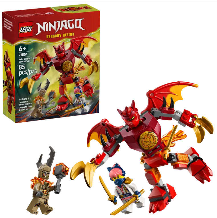 MECH TOY FOR KIDS – Kai’s Dragon Mech Battle Pack (71851) building toy lets boys and girls ages 6 and up role-play action from season 4 of the NINJAGO® Dragons Rising TV show