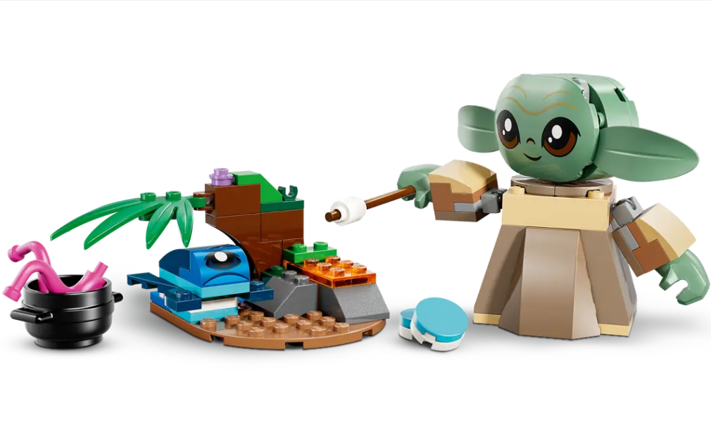 FUN ACCESSORIES – Build a fireplace with a cooking pot for 2 tentacles, place the stick with a marshmallow in Grogu’s hand and find 1 of the 2 blue macarons in Grogu’s belly