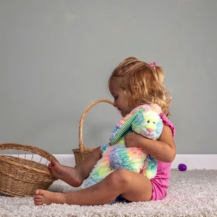 FROM MARY MEYER Marshmallow Zoo soft toy animals have weighted bums and feet and slouchy bodies that are fun to carry and curl-up with; place bunny with a basket for delight on Easter morning, or give to a bunny lover anytime of year
